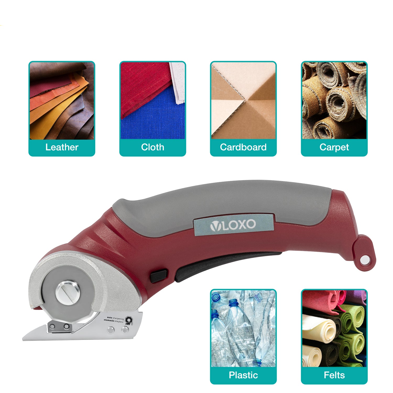 This electric scissors is very easy-to-use, portable and friendly for beginners, can cut cardboard, fabric, thin metal, leather, plastic mats, carpets, felts etc. without moving blades manually, effectively release your hand and boost your overall efficiency